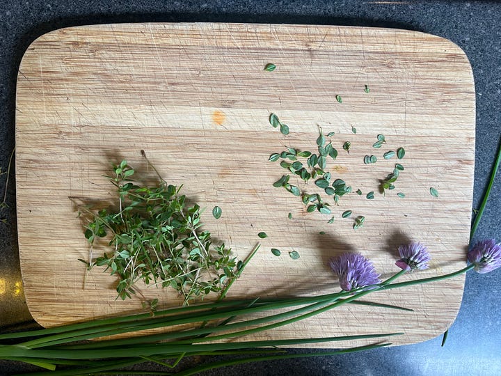 Herbs: there is nothing like fresh herbs from the garden thrown on/in/near every meal. I made up some Summer Butter (recipe here) last weekend and have been slathering it on anything and everything butter worthy. If you don’t have access to the Fruit & Flower vinegar used in the recipe some ACV would do the trick!